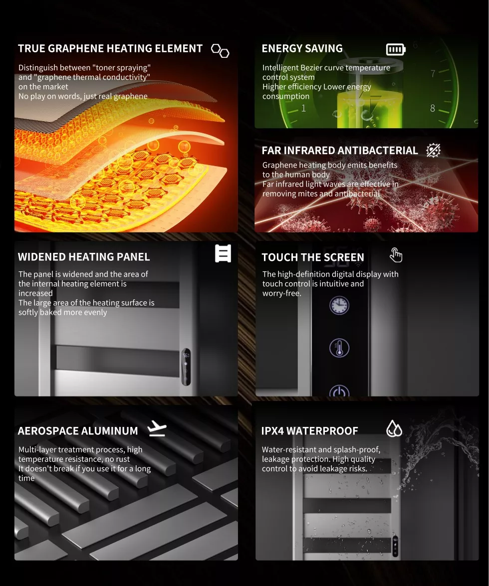 Tuotteiden laatu- ja käyttökokemukselle omistettu yritys Meshow tarjoaa edelleen korkealaatuisia 135W Grafene Electric -pyyhetelineitä kiinalaisille kotitalouksille. Tämä tuote vastaa nykyaikaisten perheiden tarpeita toiminnallisuuden suhteen, ja se on suunniteltu yksinkertaiseksi ja tyylikkäästi sopeutumaan helposti moniin kodin ilmapiiriin. Jos todella etsit tehokasta, energiaa säästävää, mukavaa ja miellyttävää pyyhetelinettä, ota rohkeasti yhteyttä!