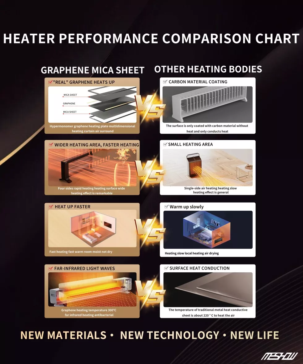 Meshow on kehittänyt korkealaatuisen 1800W: n mustan grafeenin pystysuoran lämmittimen. Tämä tuote käyttää kiille -arkkeja lämmitysmateriaalina, joka tarjoaa vakaamman ja tasaisemman lämmityksen. Sillä on energiansäästön, turvallisuuden, tehokkuuden, mukavuuden ja useiden suojausten etuja. Voidaan käyttää eri paikoissa, kuten makuuhuoneissa, opiskeluhuoneissa, toimistoissa, kaupallisissa tiloissa jne. Tulee paras valinta sisäilmoitukseen!