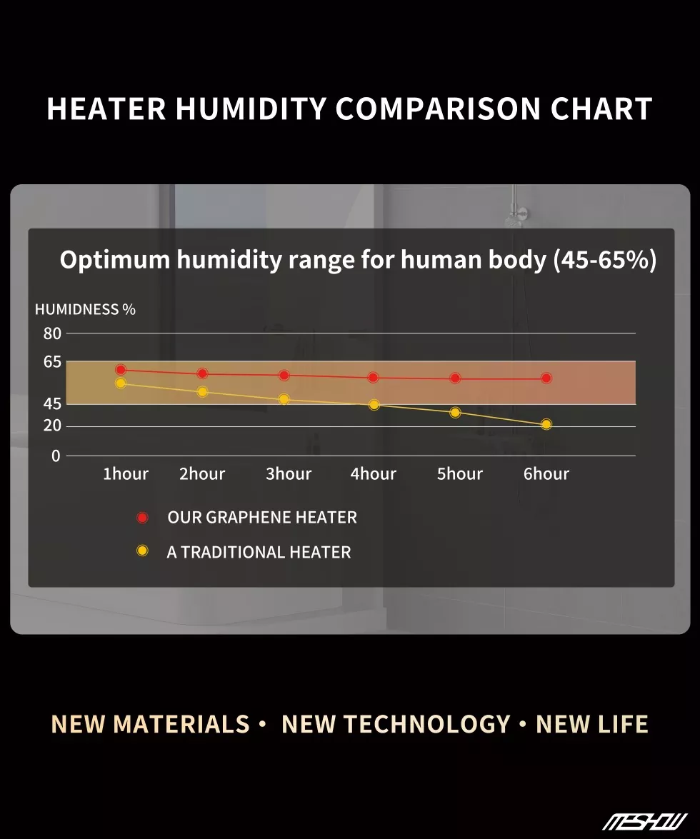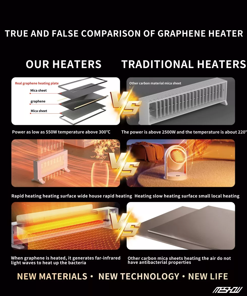 1800W: n musta grafeenin pystysuuntainen lämmitin on Meshow'n myydyin tuote, ja sen hinta on myös erittäin edullinen. Pystysuunnittelulla on myös etuja, se ei vain voi sijoittaa sisäkulmiin, vaan sitä voidaan myös siirtää vapaasti. Tilaa säästäessä on myös erittäin kätevä liikkua ja siinä on enemmän käyttöskenaarioita. Lämmitin kulkee suhteellisen hiljaa ilman melua, mikä tekee siitä erittäin sopivan käytettäväksi hiljaisissa ympäristöissä, kuten tutkimushuoneissa ja äitiyshuoneissa.