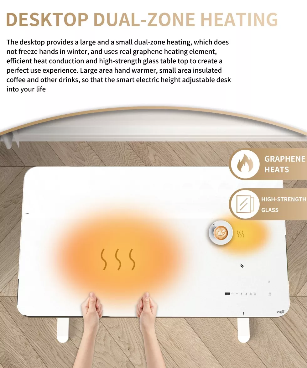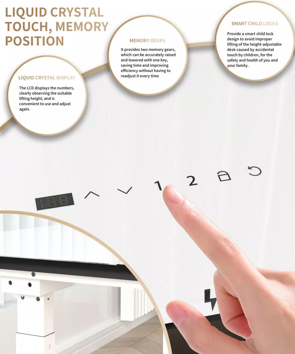 • Valkoinen lasilevy kaksoismoottorin sähköinen nostopöytäValkoinen lasilevy kaksoismoottorin sähköinen nostopöytä